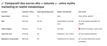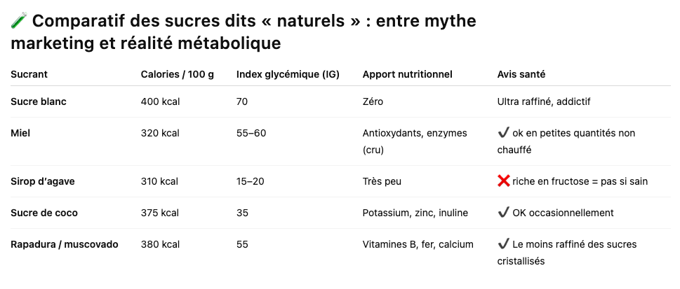 🧪 Comparatif des sucres dits « naturels » : entre mythe marketing et réalité métabolique: va voir sur mon instagram !
