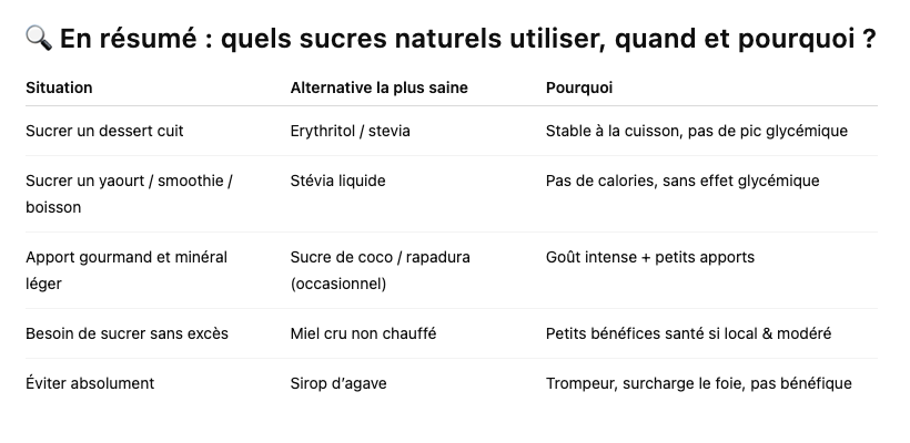 ✅ En résumé : utilisés avec modération et bon sens, ces alternatives sont sûres, efficaces et totalement compatibles avec une alimentation saine, flexible et plaisir.